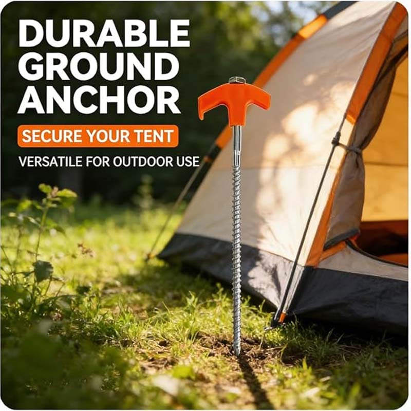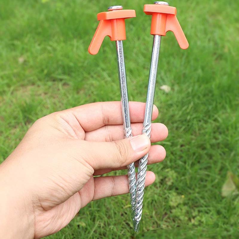 ⛺【 HIGH QUALITY & DURABLE】 Made from high-quality steel with a threaded end for easy insert and superior grip when drilling into various hard surfaces. Whether it's grass, hard soil, gravel, or anything in between, it holds securely.