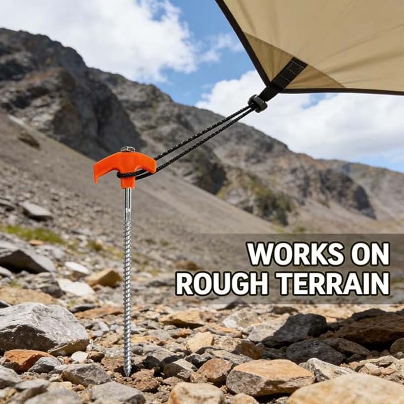 SPIRAL THREADED TIP – Designed to screw into the ground for superior hold. This threaded design significantly increases friction and resistance, preventing the peg from being pulled out easily, particularly in loose soil or sand.